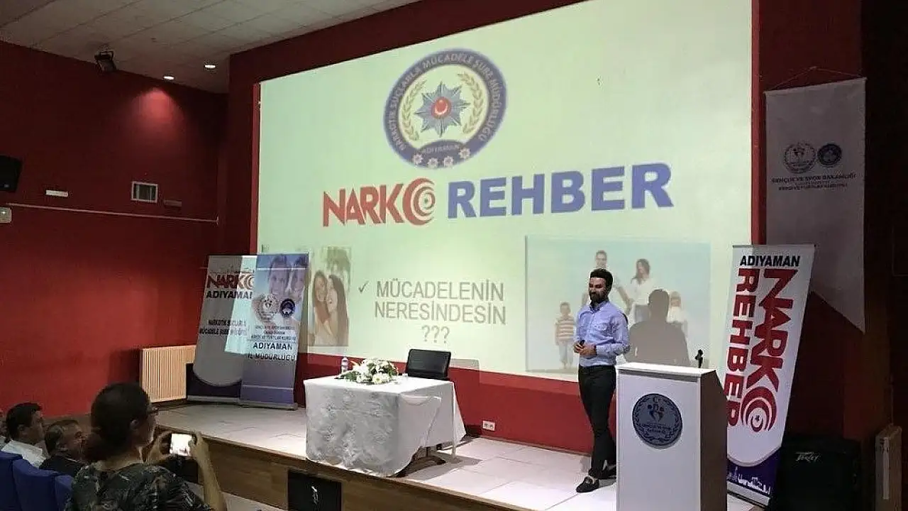 Narkotik Suçlarla Mücadele Şube Müdürlüğü Bilgilendirme Faaliyetleri Büro Amirliği görevlilerince Narko rehber projesi kapsamın da Adıyaman merkez ve ilçelerinde 2018 yılı içerisinde çeşitli kurum çalışanlarına, uyuşturucu ile mücadelede katkı sağlamaları, uyuşturucu maddelerin topluma verdiği zararlar, bağımlı şahısların topluma kazandırılması, ihbar etme konusunda kolluk kuvvetleri ile nasıl irtibata geçecekleri hakkında bilgilendirildi.