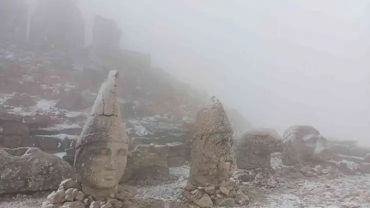 Her yıl binlerce yerli ve yabancı turistin ziyaret ettiği Nemrut Dağı, arkeologlar tarafından Dünya´nın 8´inci harikası olarak kabul ediliyor. Devasa heykellerin bulunduğu Nemrut Dağı, bu sezon düşen ilk kar ile birlikte beyazlarla kuşandı. Yoğun sis olan zirve, farklı bir güzelliğe büründü. Nemrut Dağı´nı görmeye gelen yerli ve yabancı turistler kar sürprizi ile karşılaştı. Turistler, zirvede kar yağışının ayrı bir güzellik oluşturduğunu belirterek, Nemrut Dağı´na hayranlıklarını dile getirdi.