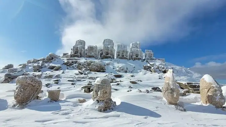 Adıyaman merkez ve ilçelerinde etkili olan yağmur, Nemrut Dağı zirvesine kar olarak düştü. UNESCO Dünya Kültür Mirası Listesinde yer alan Nemrut Dağı zirvesinde hava sıcaklığı eksi 5 dereceye kadar düşerken, tipi nedeniyle kar kalınlığı 10 santim ile yarım metre arasında değişiyor.