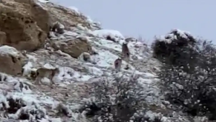 Sivas´ın Divriği ilçesinde nesli tükenme tehlikesi altında bulunan ve doğanın hayalet hayvanları olarak da adlandırılan vaşaklar bir arada görüldü.
