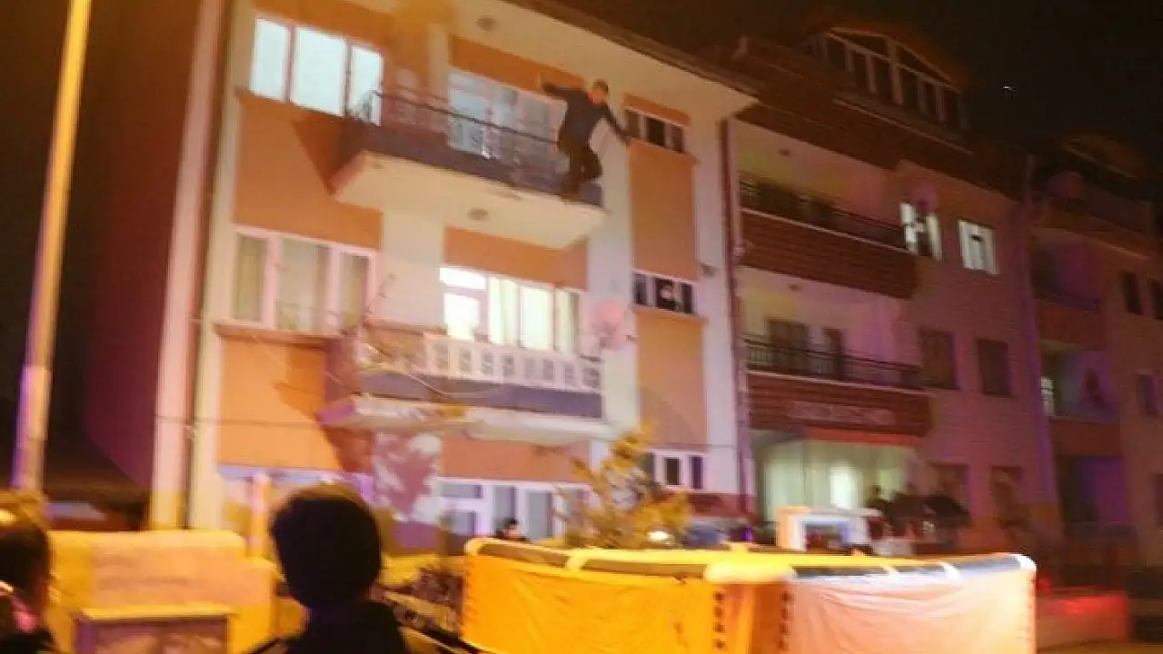 Sivas´ta kız arkadaşıyla sorunlar yaşayan şahıs 3. kattaki evinin balkonundan aşağı atlarken annesi gözyaşları içinde izledi.
