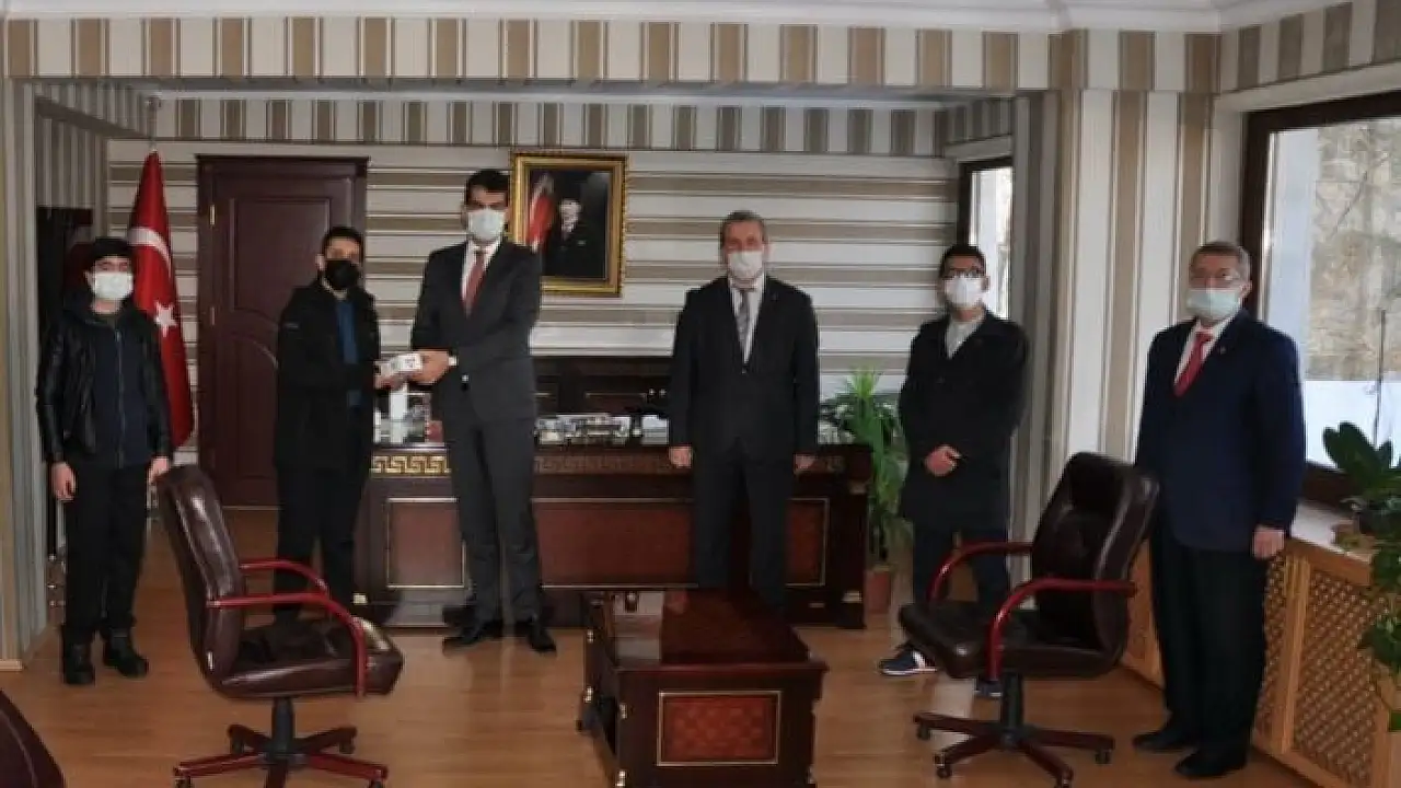 Projeyi gerçekleştiren Mehmet Tevfik Göksu Anadolu İmam Hatip Lisesi öğrencileri İlçe Kaymakamı Mutlu Köksal´ı ziyaret etti.