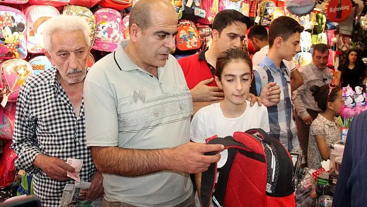 Pazartesi başlayacak olan 2017-2018 eğitim öğretim yılı için aileler okul alışverişi için sıraya girdi, esnafın yüzü güldü.