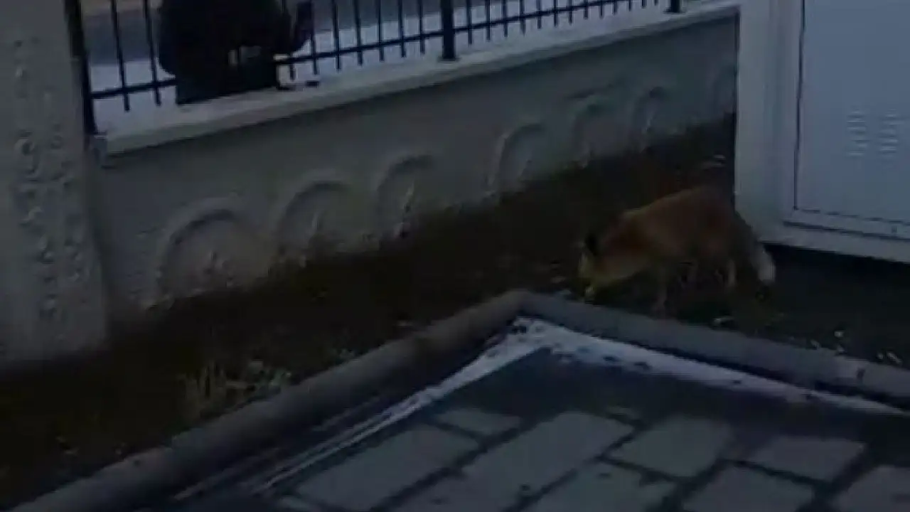 Sivas´ta okul bahçesine kadar inen tilki şaşkınlığa neden oldu. Okul müdürü aç kalan tilkiyi elleriyle besledi.