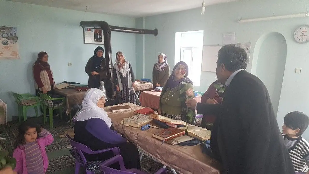 Adıyaman’ın Sincik İlçende okuma yazma seferberliği kapsamında açılan kurslarda eğitim gören kadınlara, 8 Mart Dünya Kadınlar Günü münasebetiyle gül dağıtıldı.