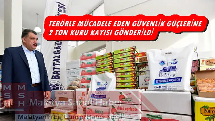 Battalgazi Belediyesi Kültür ve Sosyal İşler Müdürlüğü tarafından esnafların katkıları ile toplanan 2 ton kuru kayısı ve kayısı ürünleri, Diyarbakır’ın Sur, Şırnak’ın Çizre ve Silopi ilçelerinde terörle mücadele kapsamında operasyonlarda yer alan güvenlik güçlerine verilmek üzere gönderildi. Battalgazi Belediyesi Hayır Çarşısı aracılığı ile gönderilen kuru kayısı ve kayısı ürünleri ile ilgili konuşan Battalgazi Belediye Başkanı Selahattin Gürkan, terörle mücadele veren güvenlik güçlerinin arkasında olduklarını belirterek, “Malatyalı esnafımızın, özellikle gıda üreticileri firmalarımızın bu hassasiyetini tebrik ediyorum. Bu erdemli davranışlarından dolayı onları kutluyorum” diye konuştu.