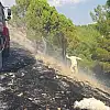 Bir süre sonra yangını kontrol altına alan ekipler, yangını söndürdü. Çıkan yangında yaklaşık 10 dönümlük alanın yandığı bildirildi.