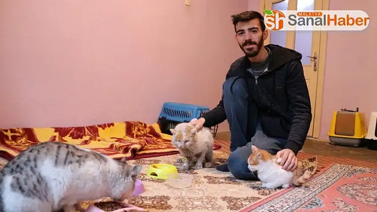 Elazığ’da meydana gelen 6.8 büyüklüğündeki depremde enkaz altında kalan ve sağ kurtulan kedilere, bir hayvansever tuttuğu 2 odalı evde bakmaya başladı.
