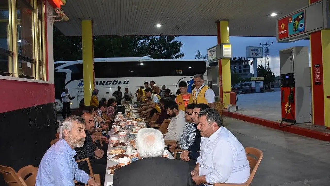 Van istikametine doğru yolculuk yapan yolcu otobüsü, Kahta girişinde bulunan petrol istasyonuna girdi. Burada dernek üyeleri tarafından yolculara iftarlık ikramında bulundu.
