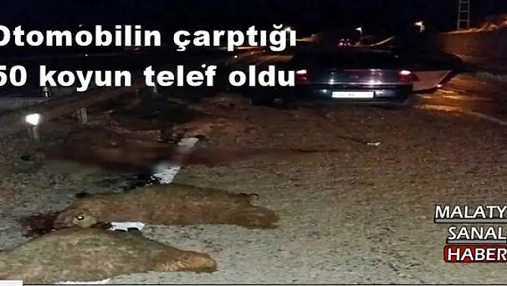 Sivas'ın Gürün ilçesinde otomobilin çarptığı 50 koyun telef oldu.