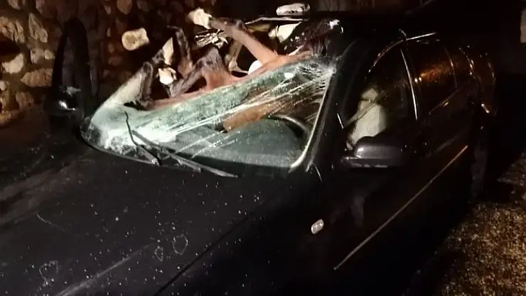 Adıyaman´da otomobilin çarptığı at ön camdan aracın içine girdi. Kazada 1 kişi yaralanırken, at telef oldu.