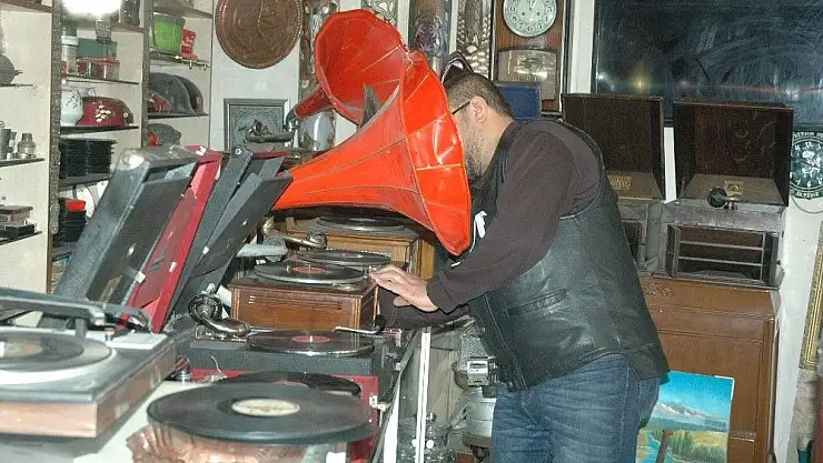 Kahramanmaraş’ta yaklaşık 25 yıldır antikacılık yapan Cahit Altıgöz, özellikle 1 asırlık gramofon ile müzik dinleme fırsatı bularak adeta geçmişe yolculuk yapıyor.