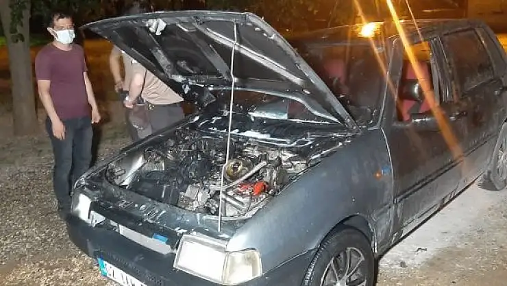 Adıyaman´da, park halindeyken alev alarak yanan otomobil paniğe neden oldu.
