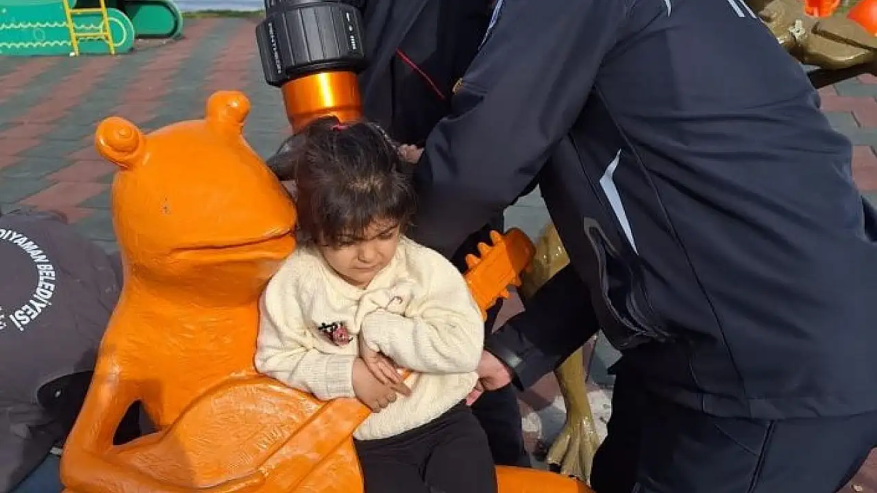 Adıyamanda, park içerisinde bulunan oyun aletine sıkışan çocuk, itfaiye ekiplerinin çalışmaları sonucu kurtarıldı.