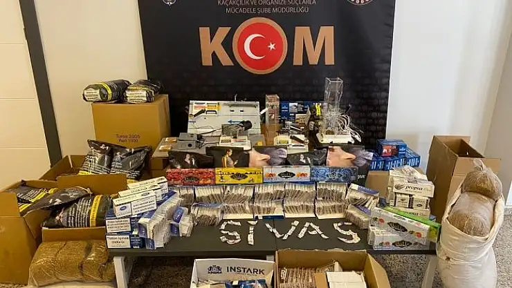 Sivas Valiliği resmi sosyal medya hesabından yapılan açıklamada; Sivas İl Emniyet Müdürlüğü Kaçakçılık ve Organize Suçlarla Mücadele Şube Müdürlüğü ekipleri, eş zamanlı olarak 13 adrese operasyon yaptı. Adreslerde yapılan incelemelerde piyasa değeri 600 bin lira olan kaçak tütün, sigara ve makoron ele geçirildi. Operasyon kapsamında Sivas İl Merkezinde 7 şüpheli, Hatay ilinde 1 şüpheli yakalandı. Adli işlemlerin ardından 1 şüpheli tutuklanarak cezaevine gönderildi.