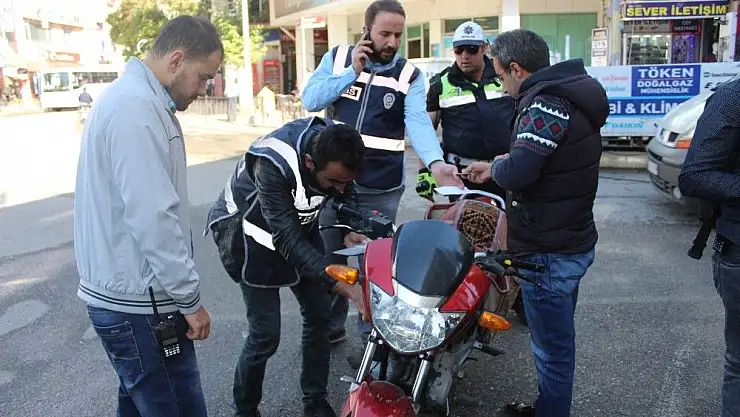 Kent merkezinde 5 farklı noktada yapılan motosiklet uygulamasında polis ekipleri uygulamaya takılan motosikletleri detaylı bir şekilde inceledi.