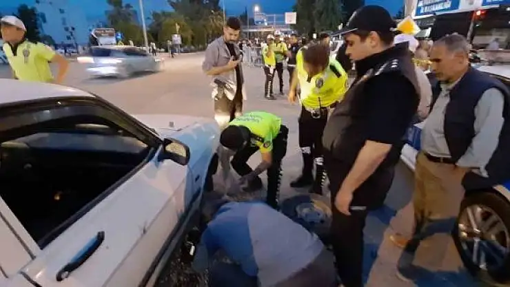 Adıyaman´da, lastiği patlayan bir otomobil polis ekiplerince önce durduruldu sonra lastiği değiştirildi.