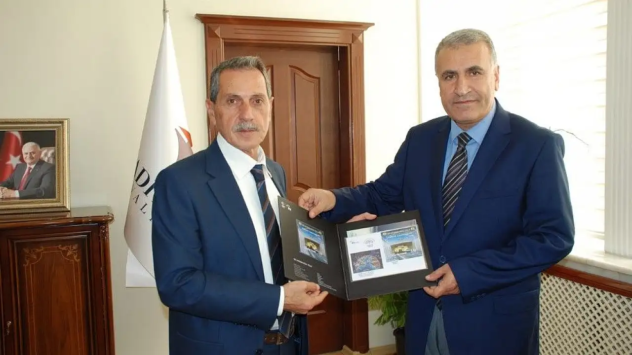 PTT Başmüdürü Remzi Fırat, Vali Nurullah Naci Kalkancı’ya pul koleksiyonu ve harita kataloğu takdim etti.