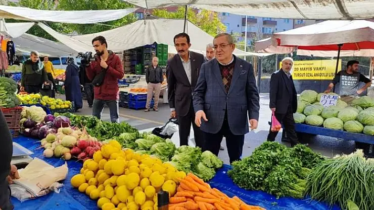 Mahalle gezisinin ardından İpek Caddesi, Turgut Özal mahallesi ve Yeşiltepe´de kurulan pazar yerlerini gezen Reşat Erdoğan, semt pazarlarının fiyat dengesini anlamında önemli bir görev üstlendiğini söyledi. Erdoğan, " Semt pazarları fiyatların dengelenmesi açısından önemli bir görev üstlenmiş durumda. Bu pazarlarda çalışan esnaf arkadaşlarımız, küçük kar marjları ile çalışıyorlar. Onların sayesinde fiyatlar hiç olmazsa dengeleniyor. Vatandaşlarımızda en azından market fiyatlarından daha ucuz sebze-meyve yeme imkanı buluyor. Bu nedenle pazar esnafı için bir takım destekler sağlanmalı" diye konuştu. Erdoğan, pazar esnafına poşet, alışveriş yapan vatandaşlara da pazar arabası dağıttı.