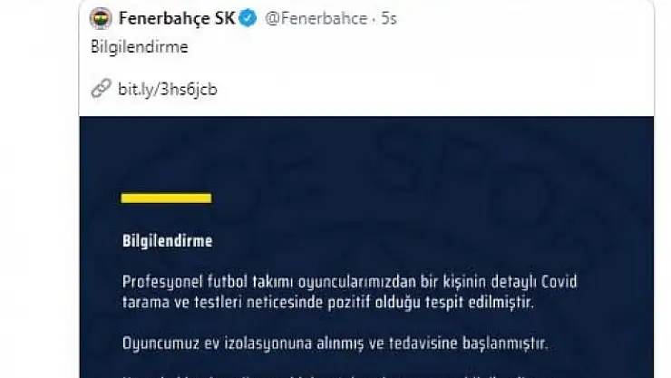 Çalımbay, sosyal medya hesabından paylaştığı geçmiş olsun mesajında, "Fenerbahçe´ye geçmiş olsun dileklerimi iletiyorum" ifadelerini kullandı.