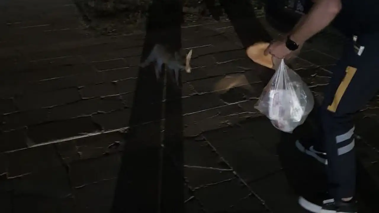 Sivas´ta görev yağan birkaç Acil Tıp Teknisyenleri aç olan tilkiyi elleriyle besledi, o anlar cep telefonu kamerasına yansıdı.