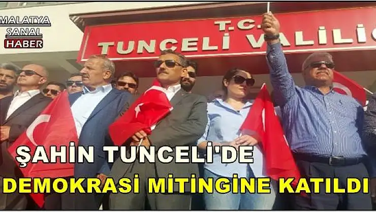 AK Parti’nin Tunceli Koordinatör Milletvekili olan Mustafa Şahin, ildeki Demokrasi ve Şehitler Mitingi'ne katıldı. Tunceli'de Atatürk Mahallesi'nde bulunan Hükümet Konağı önünde düzenlenen demokrasi mitingine devlet yetkililerinin yanı sıra binlerce vatandaş katıldı. 15 Temmuz darbe girişimi sırasında şehit olanlar için saygı duruşunda bulunulması ve İstiklal Marşı okunmasıyla başlayan mitinge Tunceli Valisi Osman Kaymak, AK Parti Malatya Milletvekili Mustafa Şahin, Cumhuriyet Başsavcısı Başak Şaktanlı Eryılmaz, Emniyet Müdürü Fahrettin Şen, Rektör Prof. Dr. Ubeyde İpek, AK Parti ve CHP İl Başkanları ile kurum amirleri de katıldı.