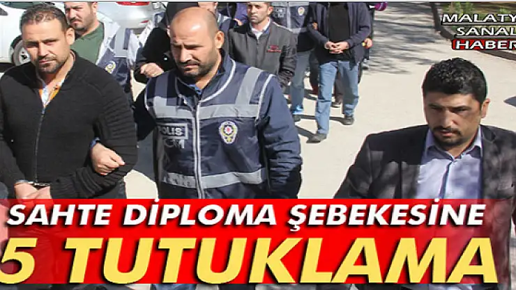 Malatya Adana, Osmaniye, Düzce, ve Mersin'de düzenlenen eş zamanlı operasyonda, sahte diploma düzenleyerek atanamayan öğretmenlerin atanmalarını sağladığı iddiasıyla gözaltına alınan 3'ü kadın 11 kişiden 5'i tutuklandı.