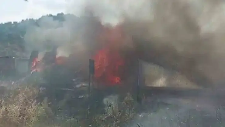Adıyaman´ın Gölbaşı ilçesinde saman yüklü kamyon alev alarak yandı.