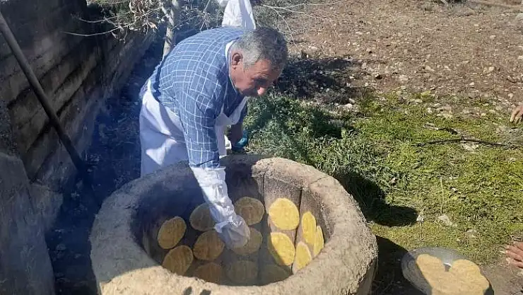 Adıyaman´ın Samsat ilçesinde kadınlar, bayram sofralarının vazgeçilmezi olan bayram taplaması adı verilen çörekli ekmeği yapmaya başladı