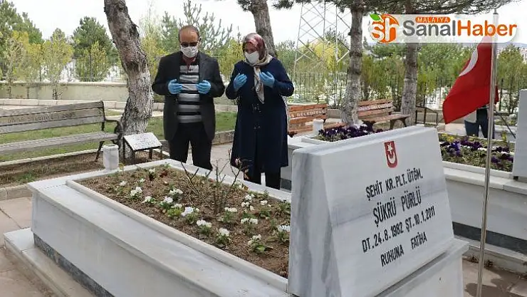 Sivas’ta korona virüs tedbirleri kapsamında sokağa çıkamayan şehit ailesi, valilikten aldıkları özel izinle şehit oğullarının mezarını ziyaret etti.