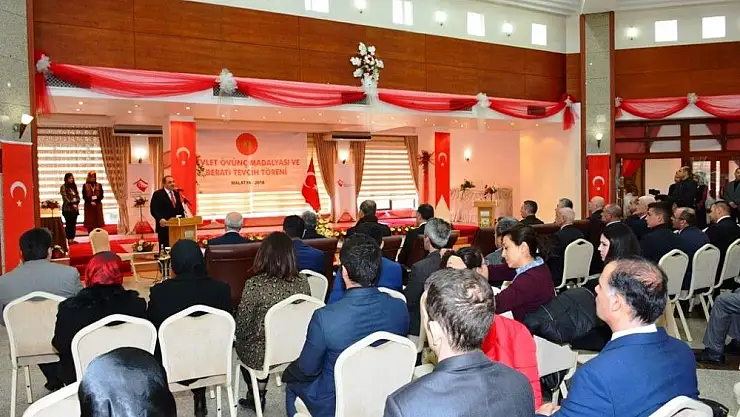Cumhurbaşkanı Recep Tayyip Erdoğan’ın himayesinde gazilere ve şehit ailelerine teslim edilmek üzere Malatya Valiliğine gönderilen Devlet Övünç Madalyaları ve Beratlarının Tevcihi Töreni, saygı duruşunda bulunulması ve İstiklal Marşı’nın okunmasıyla başladı. 2. Orduevinde düzenlenen törene Malatya Valisi Ali Kaban, 2. Ordu Kurmay Başkanı ve Garnizon Komutanı, Tümgeneral Asım Kocaoğlu, Büyükşehir Belediye Başkanı Ahmet Çakır, Cumhuriyet Başsavcısı Orhan Usta, İl Jandarma Komutanı J. Alb. Şerafettin Yılmaz, İl Emniyet Müdürü, Dr. Ömer Urhal, İl Müftüsü Ümit Çimen, Aile ve Sosyal Politikalar İl Müdürü Rasim Bulut, kamu kurum ve kuruluş yöneticileri, STK temsilcileri, şehit yakınları ve gaziler katıldı.