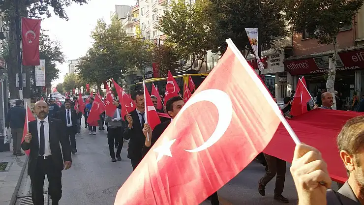 Malatya Öğretmenevi önünde toplanan kalabalık grup Soykan Parkı'na kadar bayraklar ve ‘Şehitler Ölmez Vatan Bölünmez’ sloganları eşliğinde yürüdü.