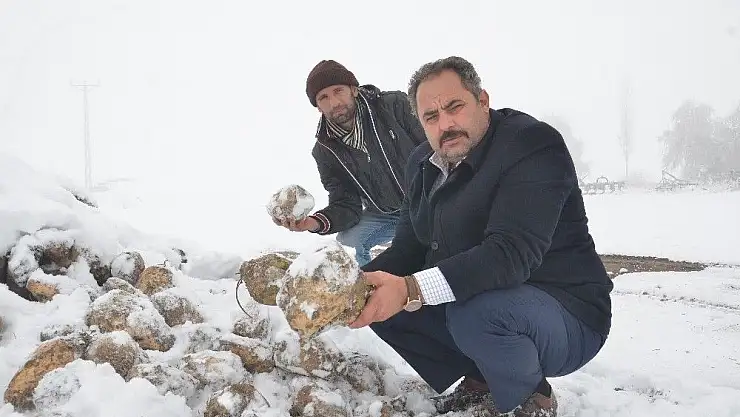 Elbistan Ovası’nda çiftçilerin yüzlerce ton şeker pancarı kar altında kaldı.