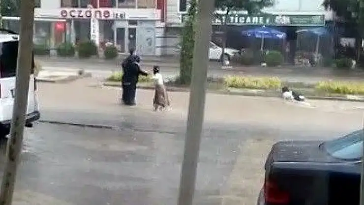 Kentte yaşanan su taşkınları sırasında bir kişinin sırtına yaşlı bir adamı alıp taşıması da dikkat çekti. Yaşlı adamı sırtında taşıyan genci görenler alkış tuttu.
