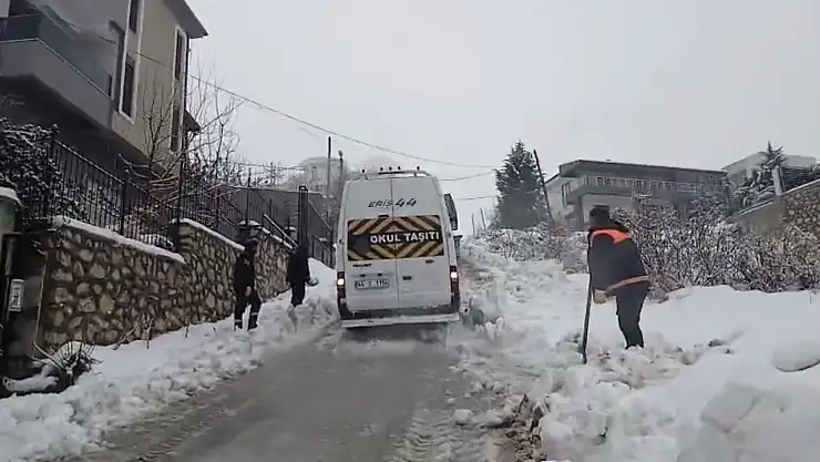 Sabahın erken saatlerinde ve karanlıkta yola çıkan öğrenciler, karlı ve yer yer buzlanan yolları aşarak okullarına ulaşmaya çalıştı. Tecde Mahallesi’nde bazı okul servisleri, yoğun buzlanma nedeniyle güzergâhlarını tamamlayamadı. Bir servis aracının sokak üzerindeki yokuşu çıkamaması üzerine öğrenciler minibüsten inerek yollarına yaya olarak devam etti. Servis aracı ise belediyeye ait iş makinelerinin desteğiyle yokuşu aşabildi.