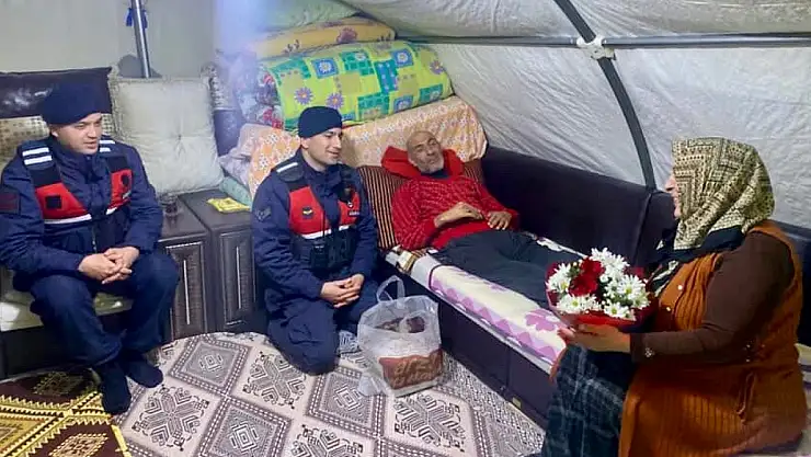 Talep üzerine harekete geçen jandarma ekipleri, temin ettikleri çiçek ve pastayı Aysel Taç’a teslim ederek aileye Sevgililer Günü sürprizi yaşattı.