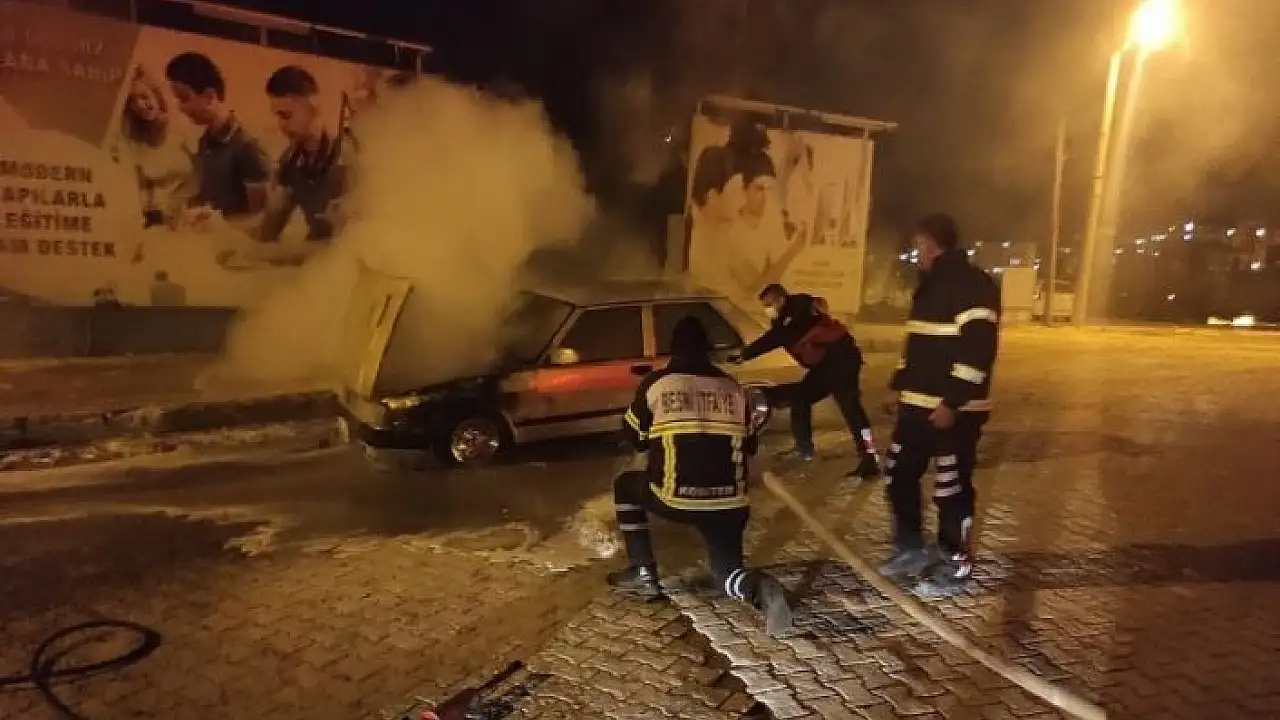 Adıyaman´ın Besni ilçesinde seyir halindeyken alev alan otomobil, itfaiye ekiplerinin çalışmaları sonucu söndürüldü.