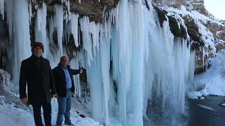 Sivas´ta dondurucu soğuğun etkisiyle Yıldız şelalesi buz tuttu. Oluşan dev sarkıtlar görsen şölen sundu.