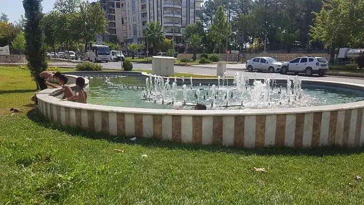 'Sıcakta bunalan çocuklar süs havuzunda serinliyor'