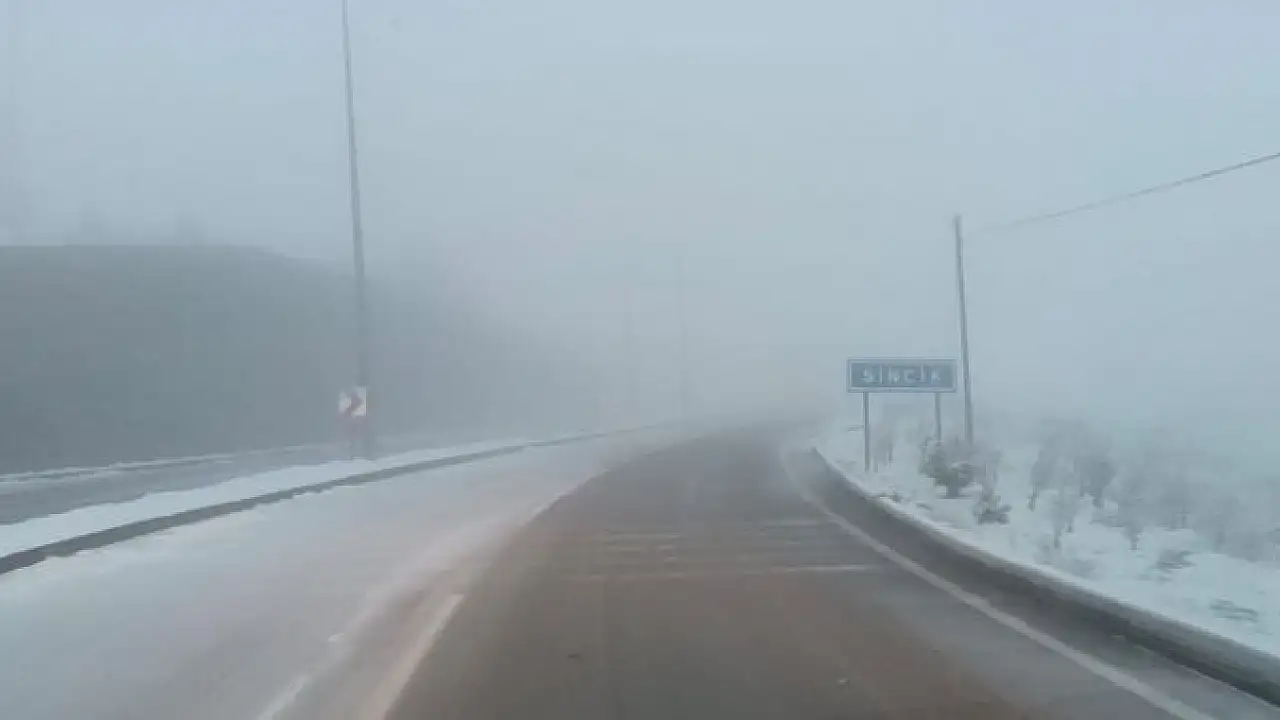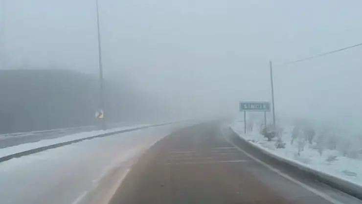 Adıyaman´ın Sincik ilçesinde etkili olan sis nedeniyle görüş mesafesi düştü.Sincik ilçesinde etkili olan kar yağışı sabah saatlerin