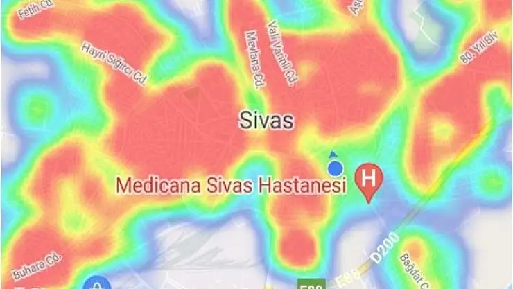 Hayat Eve Sığar uygulamasında 2021 Ocak ayında Sivas´ın birçok bölgesinde "az risk" anlamına gelen yeşil halka ve "orta risk" anlamına gelen sarı halka bulunurken Ağustos ayında "yüksek risk" anlamına gelen kırmızı halkaların yoğunluğu arttı.