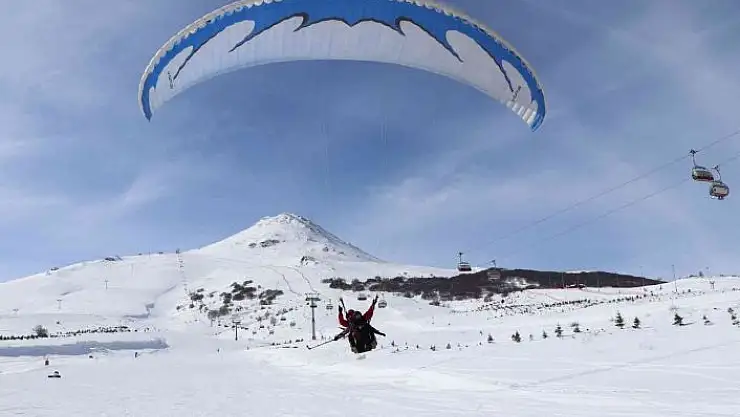 Sivas Yıldız Dağı Kış Sporları ve Turizm Merkezi, profesyonel yamaç paraşütçülerini ağırladı. Yamaç paraşütü sporcuları, 2 bin 332 metre yükseklikteki Yıldız Dağı´nın yamacından uçuş gerçekleştirdi.