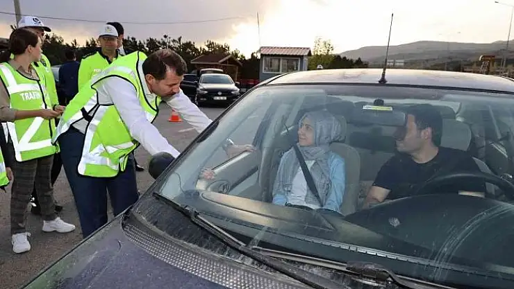 Sivas ve Kangal ilçesinde polis uygulama noktalarında Ramazan bayramı tedbirleri doğrultusunda 'Bayramınız Kemerli Olsun' sloganıyla sürücü
