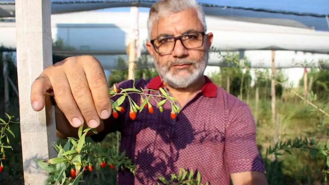 Sivas kent merkezinde 8 dönümlük alana goji berry diken girişimci, meyvenin kuşlara yem olması üzerine tarlasının bir kısmını fileyle kaplayarak çözüm aradı.