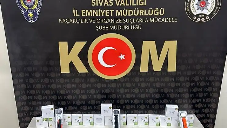 Sivas İl Emniyet Müdürlüğü Kaçakçılık ve Organize Suçlarla Mücadele Şube Müdürlüğü ekiplerince kaçakçılık olaylarını engellemek maksadıyla bir iş yeri ve eklentilerini operasyon düzenlendi. Sivas Cumhuriyet Başsavcılığı koordinesinde yapılan operasyonda kaçak olduğu değerlendirilen; 24 adet cep telefonu, 11 adet akıllı saat ve 17 adet bluetooth kulaklık ele geçirildi. Olaya ilişkin bir kişi hakkında Kaçakçılıkla Mücadele Kanununa Muhalefet suçundan yasal işlem yapıldı.