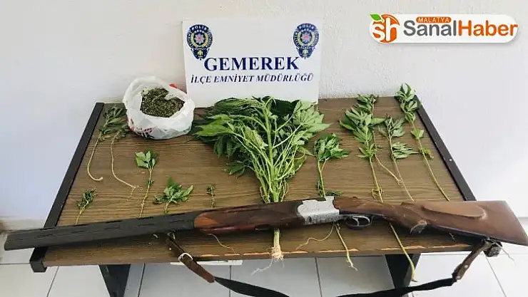 Gemerek İlçe Emniyet Müdürlüğü uyuşturucu madde kullanımının önlenmesine yönelik çalışmalarını aralıksız sürdürüyor. İlçede yapılan çalışmada 300 gram esrar maddesi olarak değerlendirilen uyuşturucu madde, 11 kök hint keneviri ve 1 adet ruhsatsız tüfek ele geçirildi.