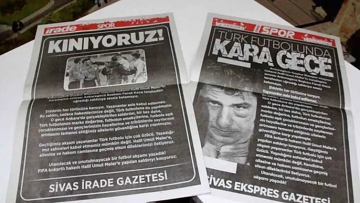 Maçın ardından spor camiası, hakem Halil Umut Meler´e yapılan saldırıdan dolayı büyük tepki gösterdi. Sivas´ta yayın yapan Sivas İrade Gazetesi ve Sivas Ekspres Gazetesi de, spor sayfalarını tamamen kararttı. Sivas İrade Gazetesi siyah zemin üzerine ´Kınıyoruz! Utanılacak ve unutulmayacak bir futbol akşamı yaşadık!´ başlığı ile yayımlandı. Gazetede yer alan uzun bir metinde ise kınama cümleleri yer aldı.