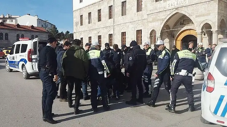 Sivas’ta askeri törende olduğu için vali ile görüşemeyen bir kişi sinir krizi geçirip saldırganlaşınca polis tarafından gözaltına alındı.