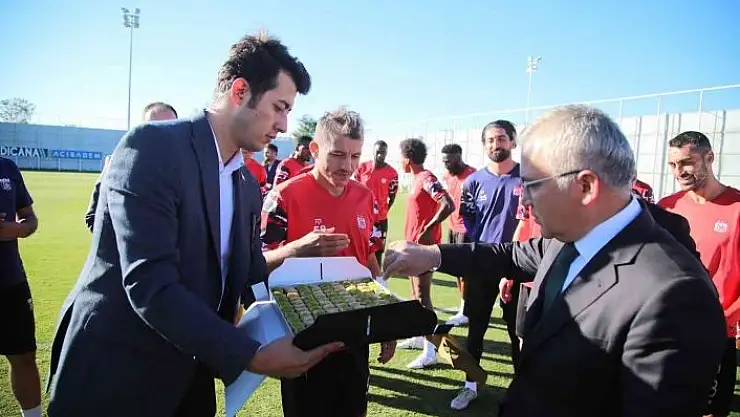 Sivas Valisi Dr. Yılmaz Şimşek, DG Sivasspor Kulübü´nü ziyaret etti. Şimşek, Slavia Prag maçı için başarı dileklerini iletip, futbolculara baklava ikram etti.