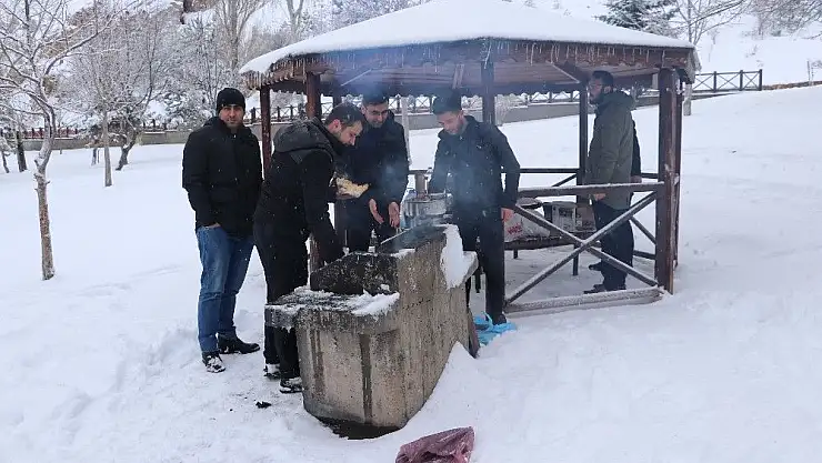 Sivas’ta kış mevsiminin en sert günleri yaşanırken mesire alanlarında, dondurucu soğuğa mangal yakıp piknik yapanlar dikkat çekti. Sivas’ta mangal sevenlerin uğrak yeri olan Paşabahçe mesire alanında bir çok aile ve arkadaş grubu, -7 derecede yaktıkları mangalda etlerini pişirip afiyetle yediler. Soğuk havanın mangal keyifleri için engel olmadığını belirten Sivaslılar, “Soğuk Sivas’ın insanına işlemez. Biz her şartta mangalımızı yaparız. Kar kış fark etmez” dediler.